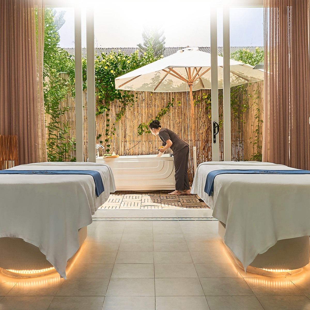 Tại La Pensée Spa, quý khách sẽ bước vào một thế giới thư thái, nơi hương thơm dịu dàng của thảo dược lan tỏa khắp không gian. Những nốt nhạc êm ái vang lên trong khung cảnh xanh mát ôm trọn dưới những tán cây cao. Tất cả hòa quyện như một thước phim quay chậm khiến tâm hồn bỗng chốc nhẹ nhàng đến lạ. Những động tác chậm rãi, chuyên nghiệp từ kỹ thuật viên sẽ thúc đẩy tuần hoàn máu và phục hồi năng lượng trong cơ thể quý khách.