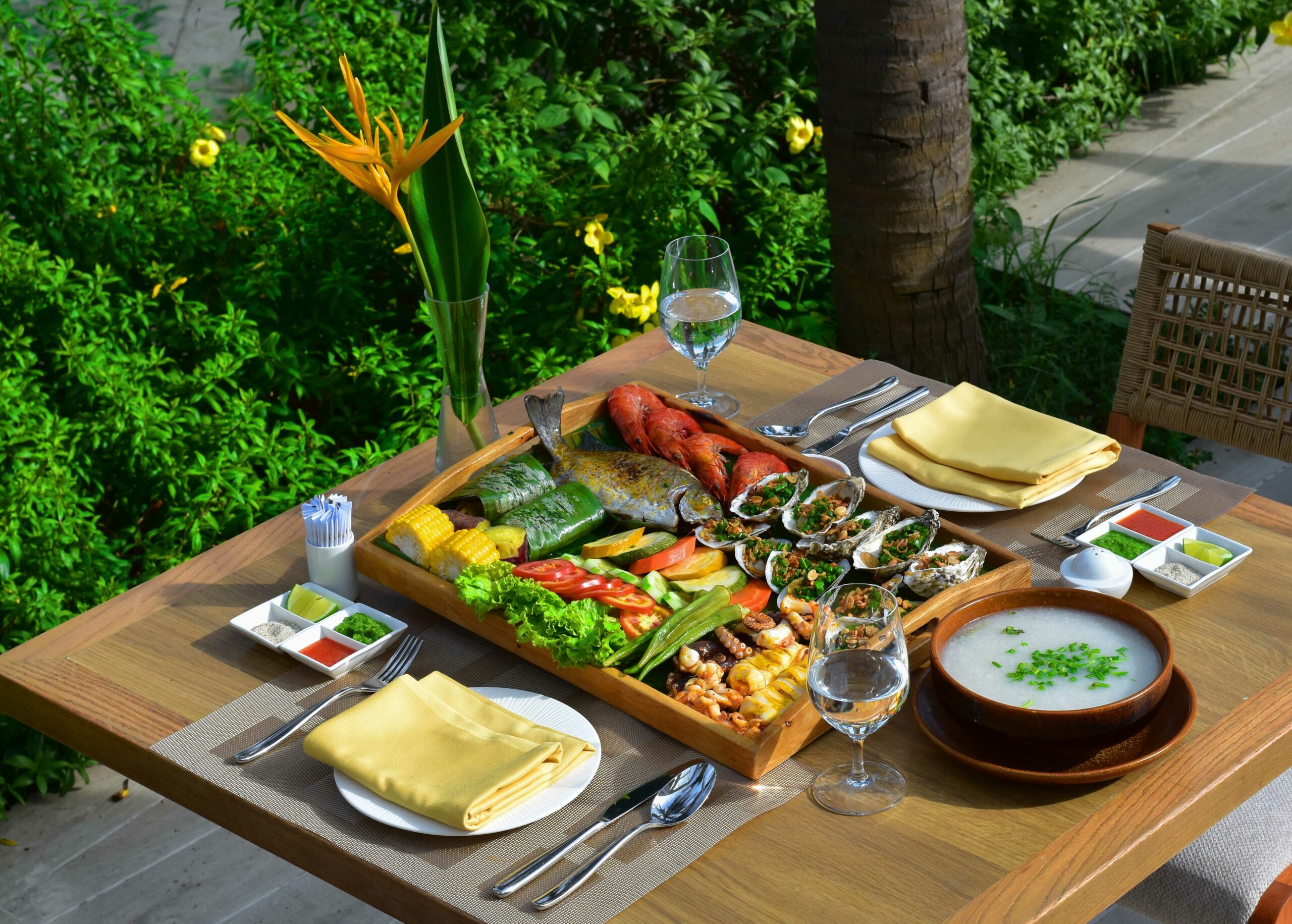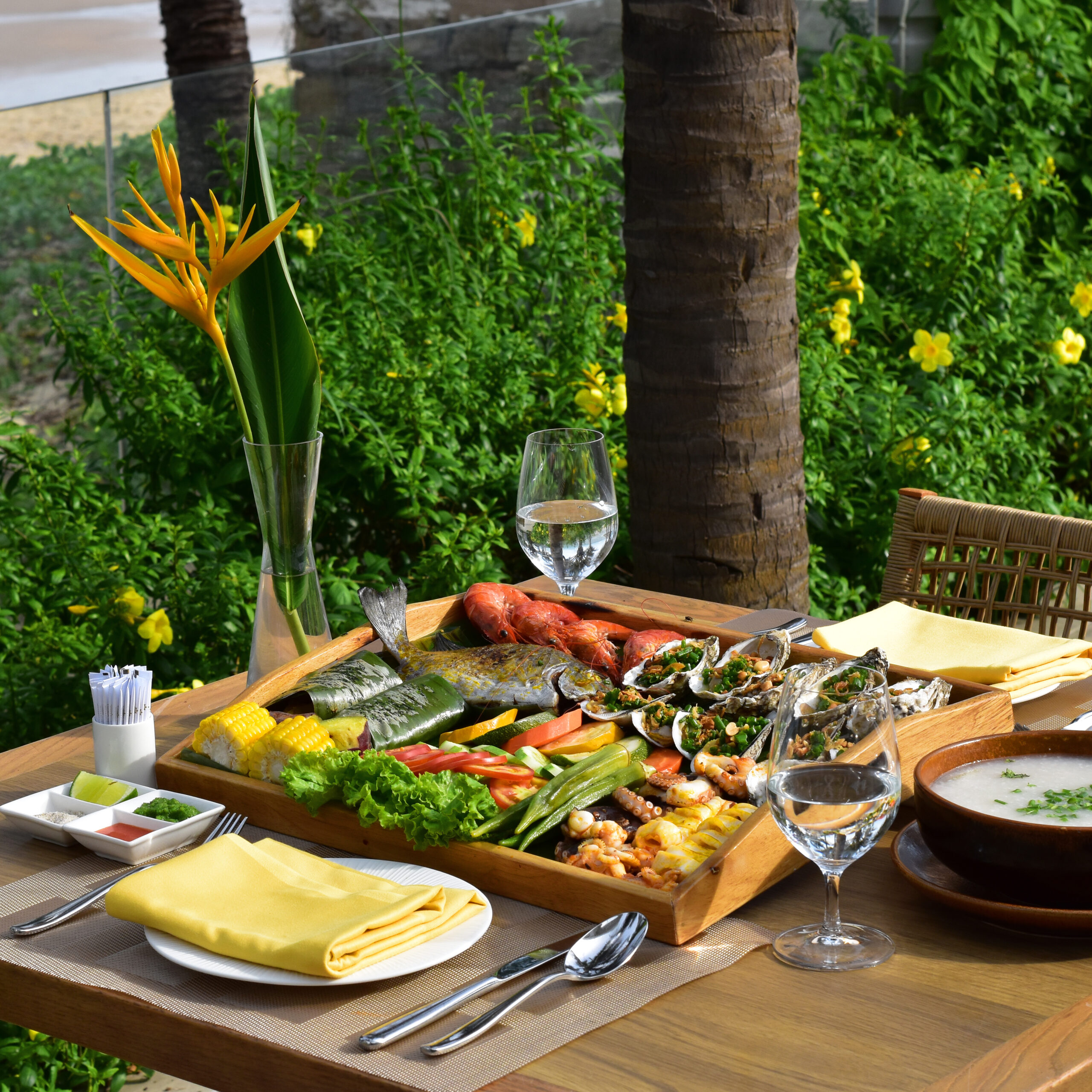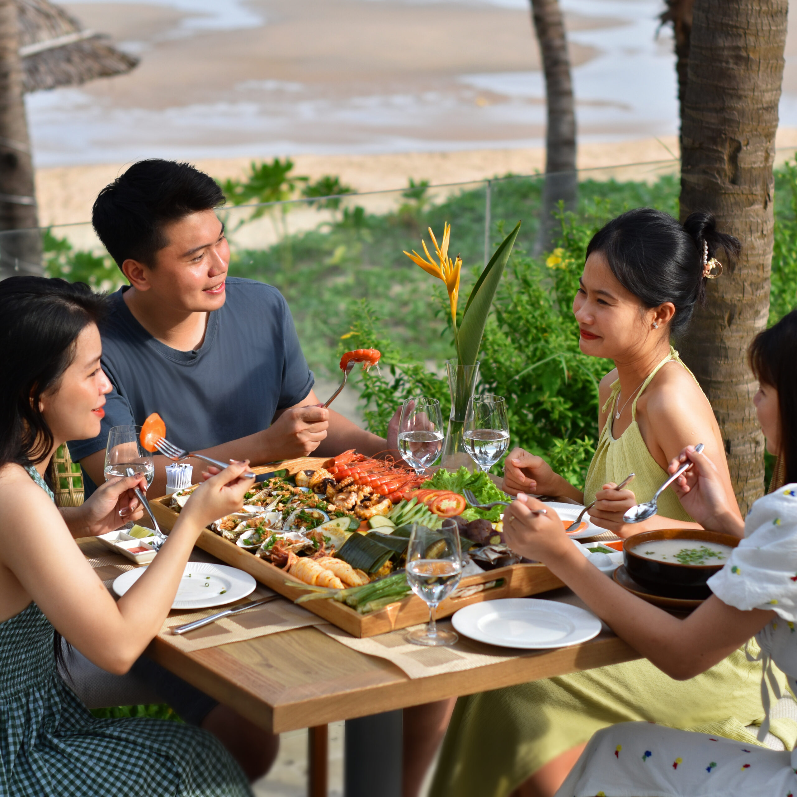 Khay hải sản được chế biến từ những nguyên liệu tươi ngon nhất và nướng tại chỗ bên bờ biển lộng gió. Trải nghiệm ẩm thực nướng lôi cuốn sẽ đem đến cho bạn khoảng thời gian trọn vẹn bên người thân yêu.